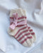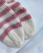 Die weißen und rosa Everyday Socks Junior sind in Sonntag von Sandnes Garn in den Farben Whipped cream [1012] und Støvet rose [4332] gestrickt.