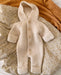 Selmas Overall ist ein großzügig geschnittenes Model und er kann für einen Mittagsschlaf im Kinderwagen perfekt über der Tageskleidung getragen werden.