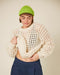 This mesh jumper is worked top down in a graphic mesh pattern. The jumper is seamless.